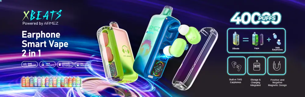 The Airmez Xbeat 40K disposable vape combines 40000 puffs, and built-in Hi-Fi headphones, delivering a revolutionary vaping and entertainment experience in one device.